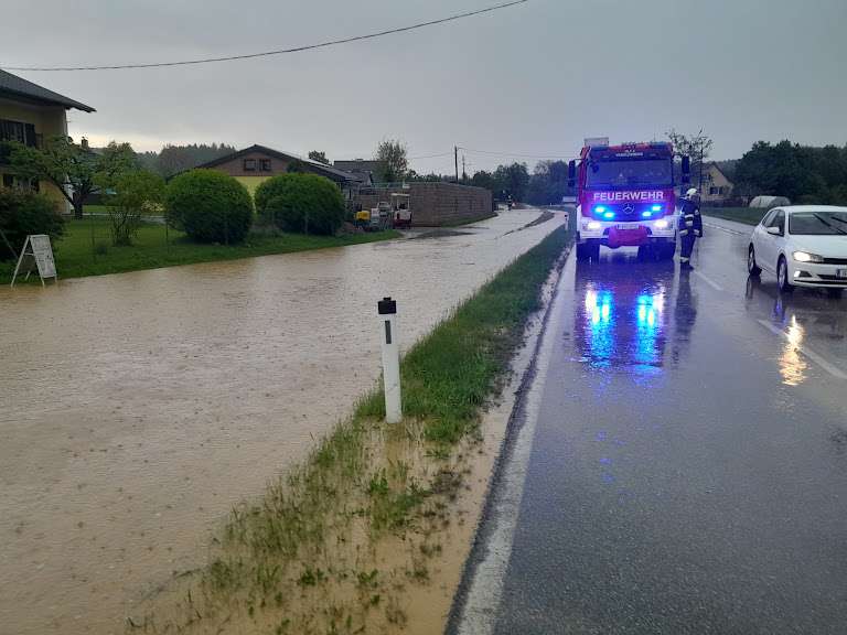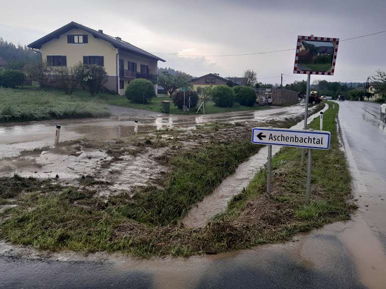 Der gewaltige Regenguss verschonte am 23. Mai auch nicht die Gemeinde Vasoldsberg. Um knapp vor 15 Uhr wurden wir zu einer Überflutung nach Aschenbachtal alarmiert. Schnell stellte sich heraus, dass dies nicht der letzte Einsatz des Tages sein wird. Besonders betroffen waren die Bereiche Aschenbachtal und die Wagersfeldsiedlung.