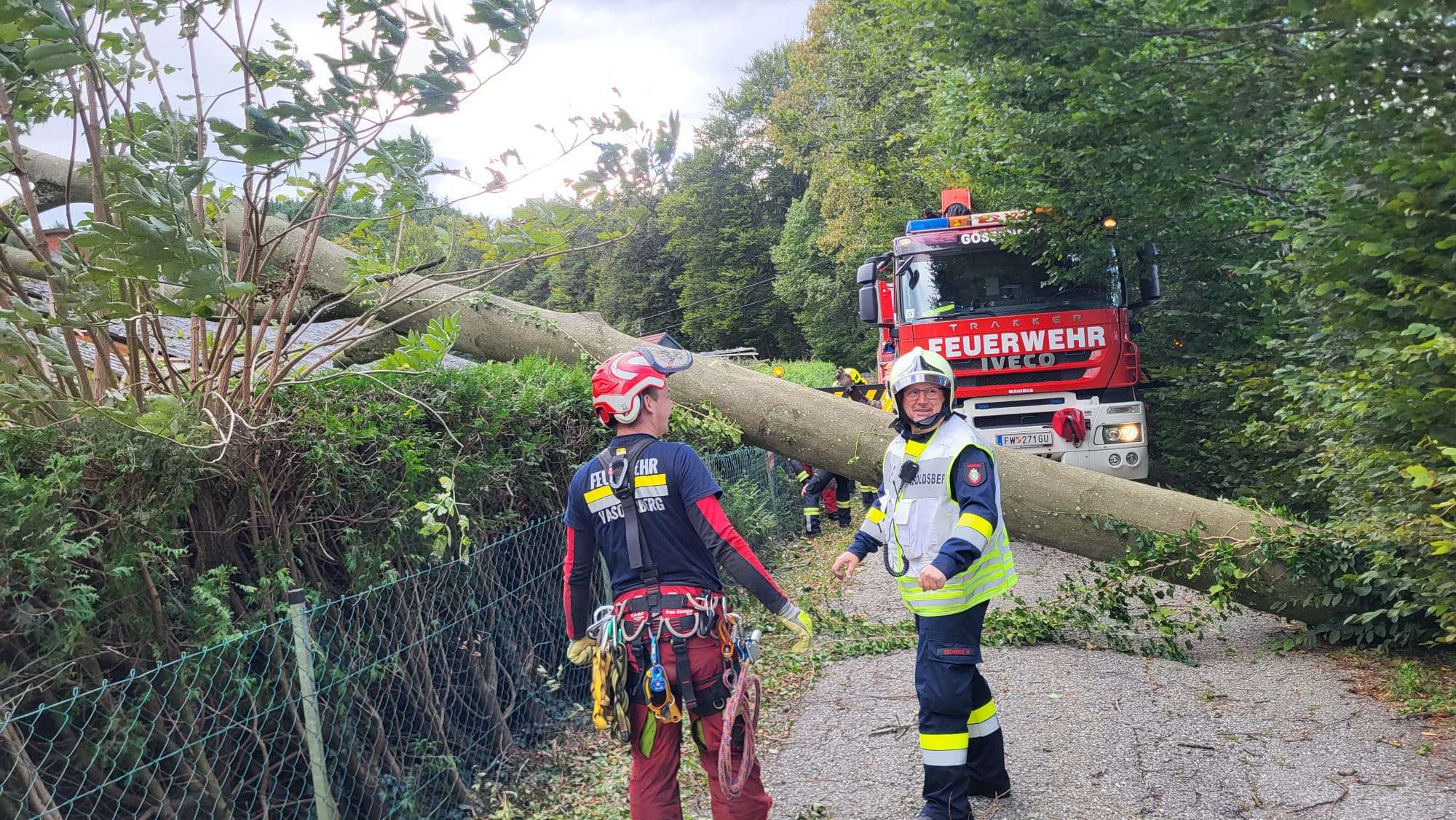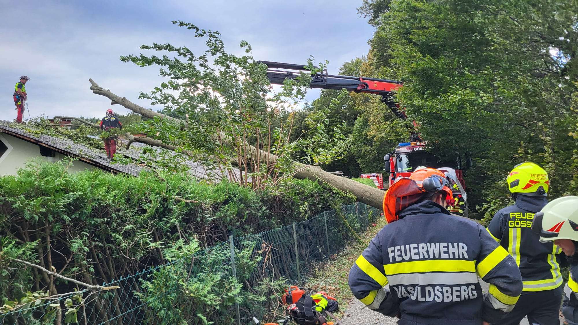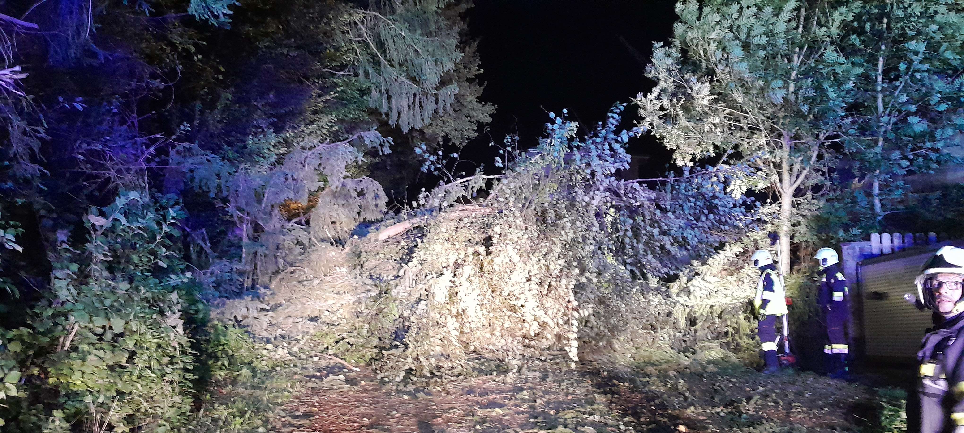 Am 15. September wurden wir um kurz nach Mitternacht aufgrund des Sturmes zu einem Baum auf Hausdach alarmiert. In den nächsten Stunden kamen zahlreiche weitere Einsätze hinzu. Aufgrund des anhaltenden Sturms mussten die Arbeiten in der Nacht teilweise unterbrochen werden. In den frühen Morgenstunden konnten die Arbeiten wieder aufgenommen werden. Mehrere Gemeindestraßen sowie die Landesstraße waren bzw sind nach wie vor aufgrund umgestürzter Bäume nicht befahrbar. Die Arbeiten werden noch den ganzen Tag andauern. Am Nachmittag bis in den Abend wurden alle Einsatzadressen abgearbeitet. Teilweise bleiben Gemeindestraßen gesperrt. Bäume drohen auf die Fahrbahn zu stürzen und sind momentan nicht zugänglich. Insgesamt wurden rund 30 Einsatzadressen mit 7 Fahrzeugen und ca. 50 Mann abgearbeitet. An gewissen Einsatzadressen wurde Stundenlang gearbeitet um die Baumteile von Dächer bzw. Straßen zu entfernen. Danke an die Feuerwehren Hausmannstätten, Gössendorf und Kainbach sowie an die Arbeiter der Marktgemeinde Vasoldsberg für die Unterstützung.