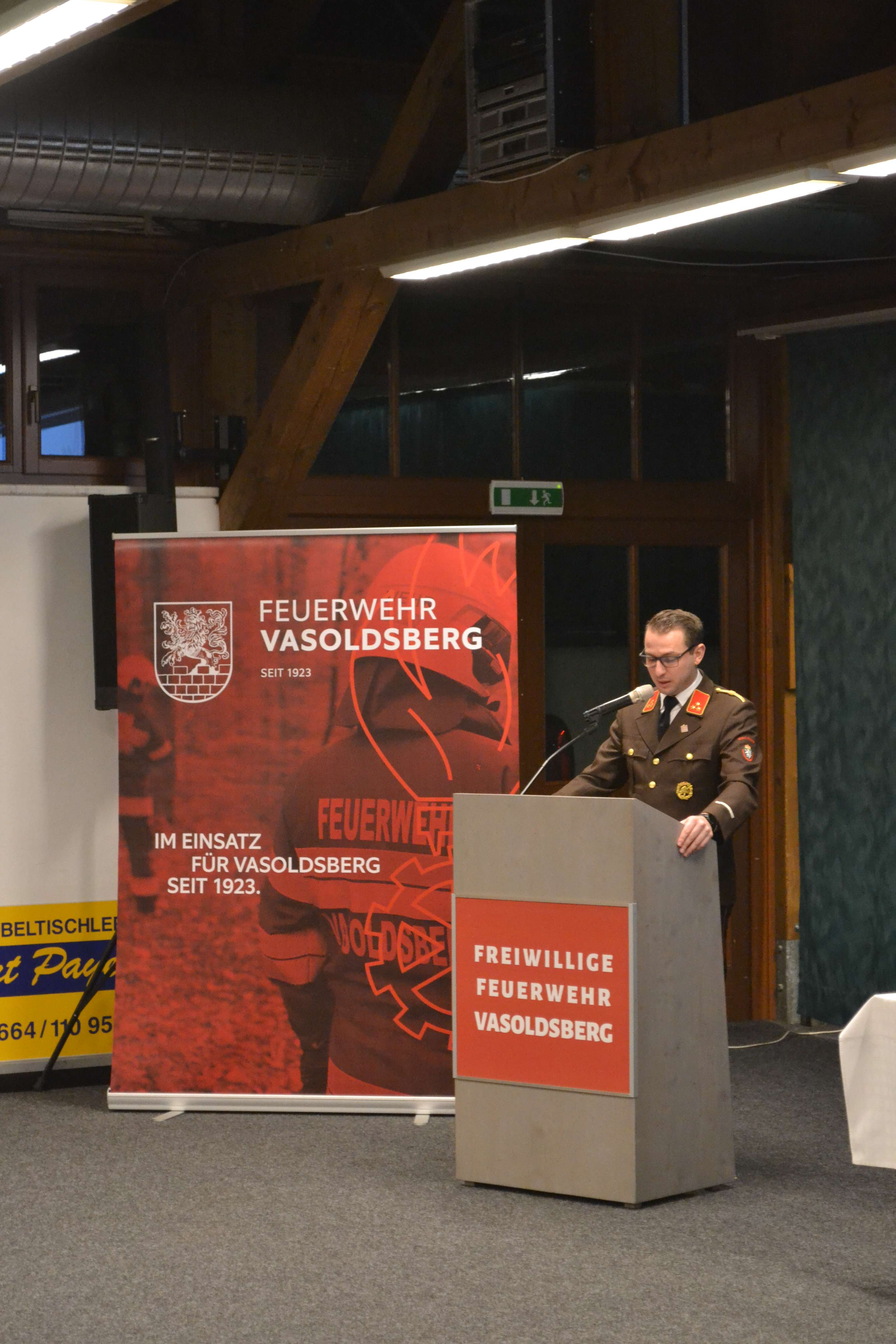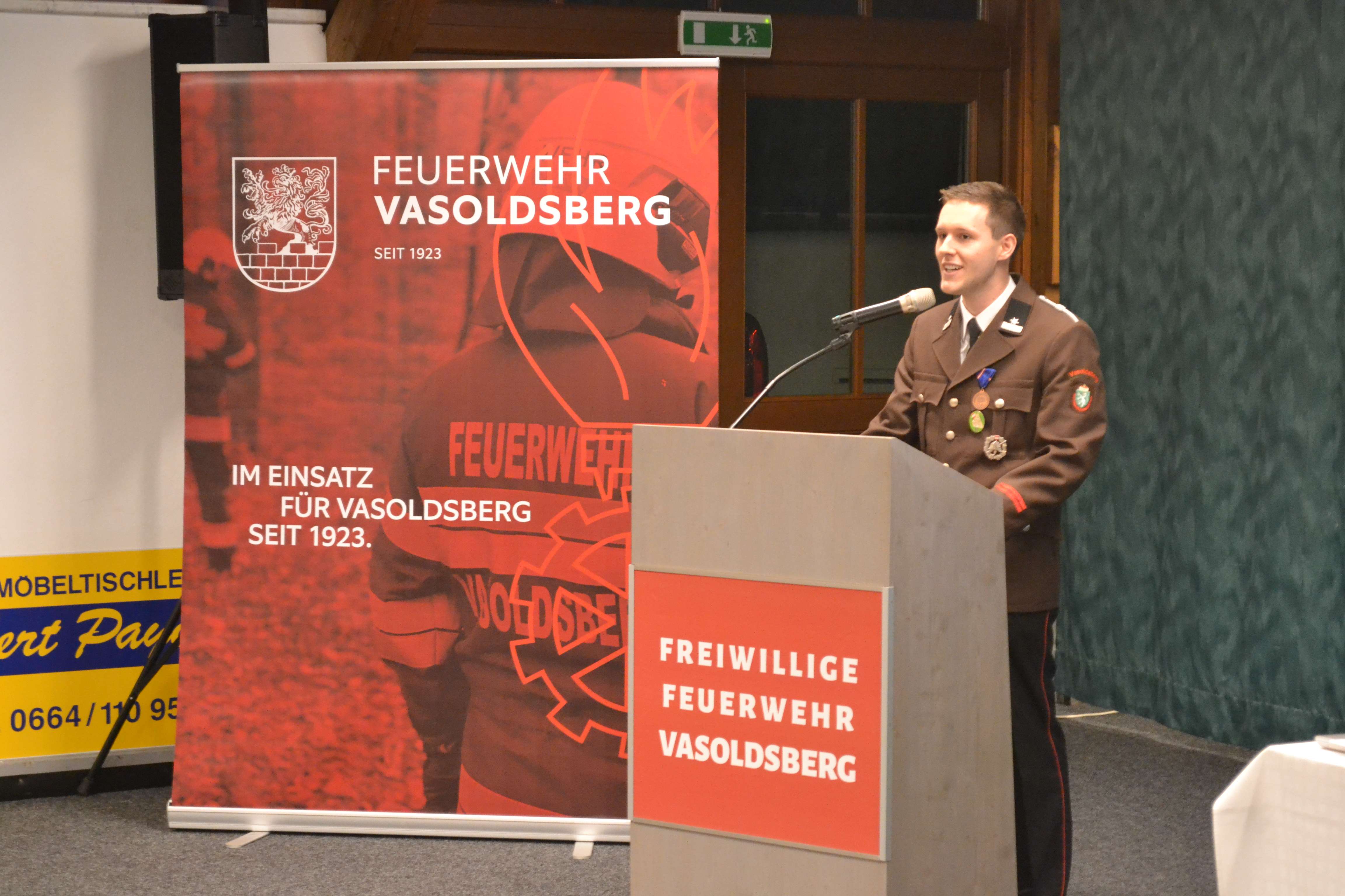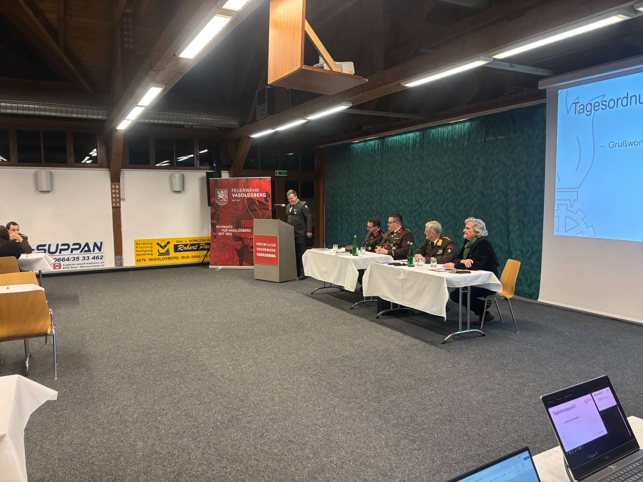 Am Sonntag, 5. Jänner fand um 18 Uhr die 100. Wehrversammlung der FF Vasoldsberg statt. HBI Kevin Linhart konnte neben Bürgermeister Johann Wolf-Maier, dem gesamten Gemeindevorstand, Vertretern von Polizei und Roten Kreuz sowie ABI Johann Masser auch 86 Kameradinnen und Kameraden der FF Vasoldsberg begrüßen.